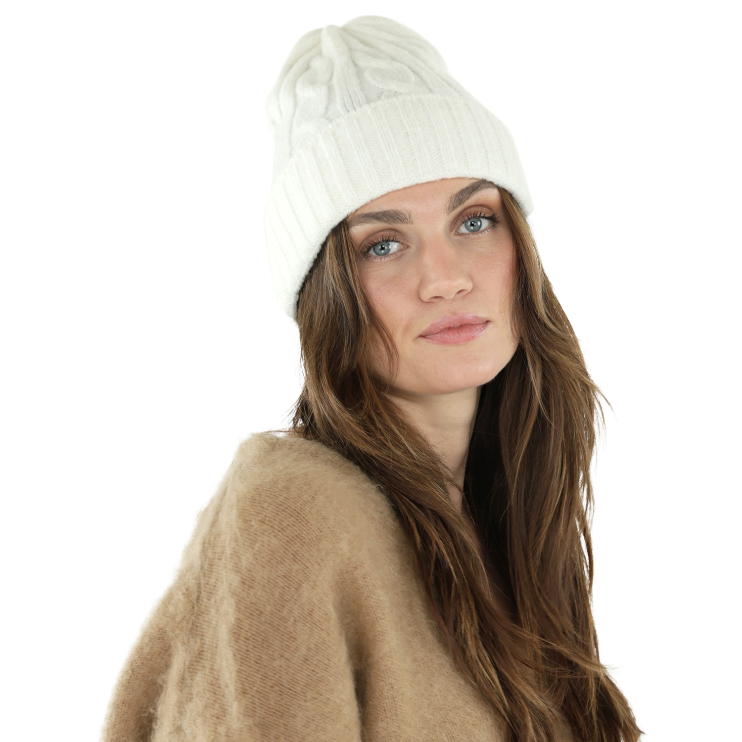 Beanies - Gårda Bad Gastein Cable Knit Wool Mix Beanie (white)