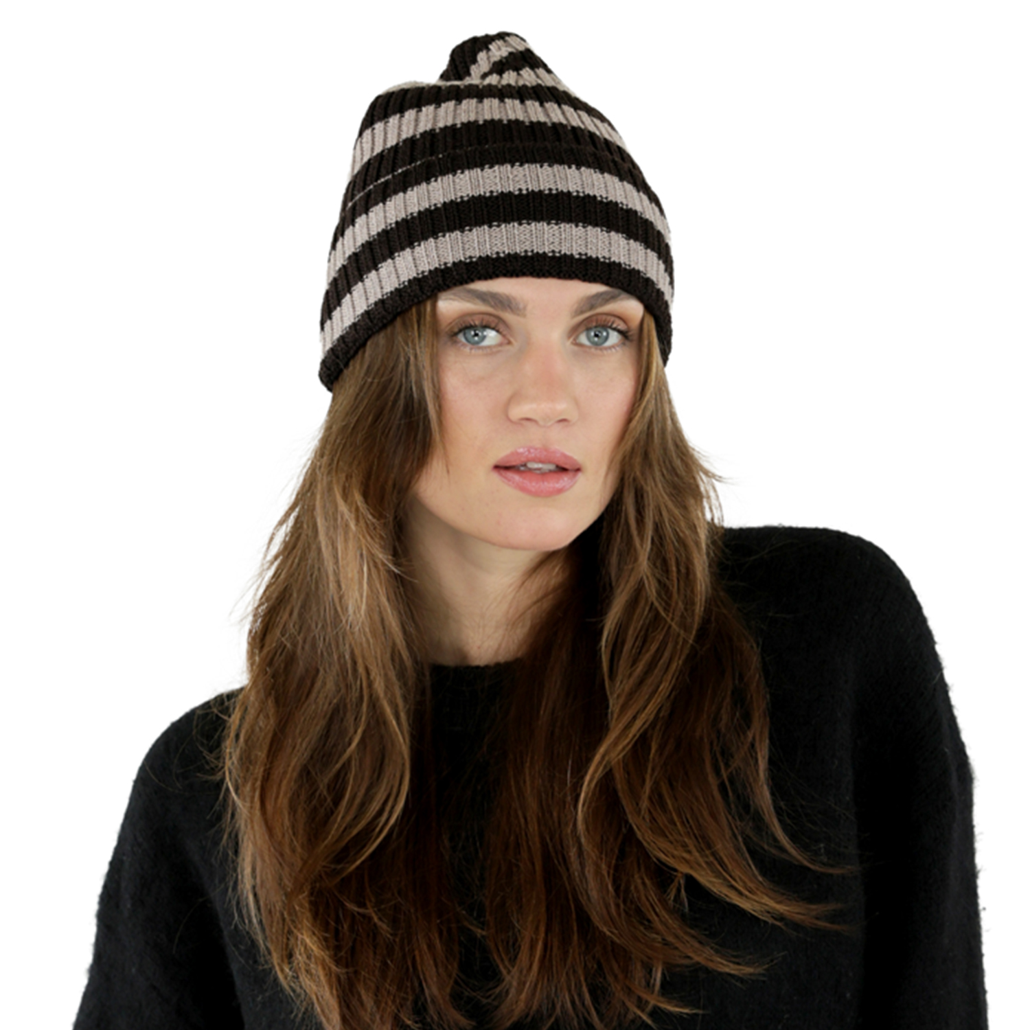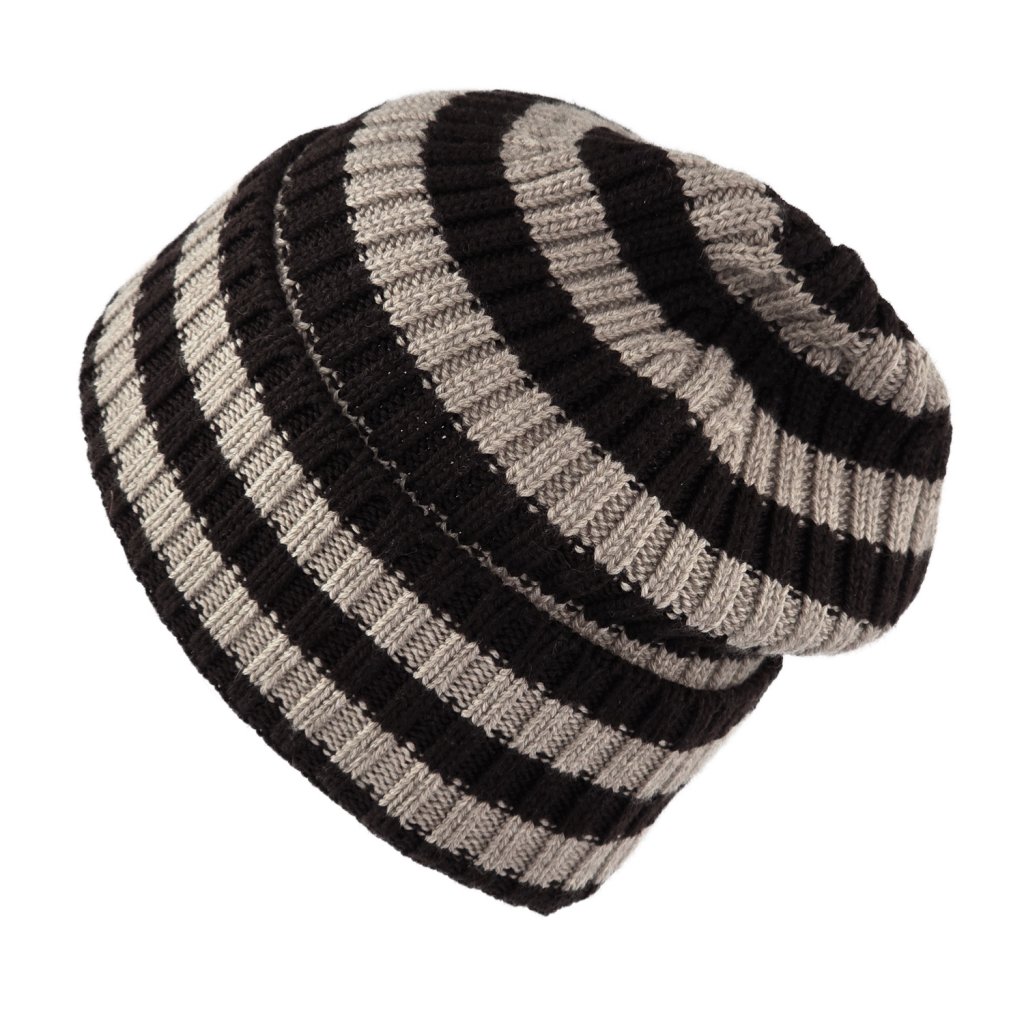 Beanies - Gårda Davos Striped Merino Wool Beanie (brown/beige)