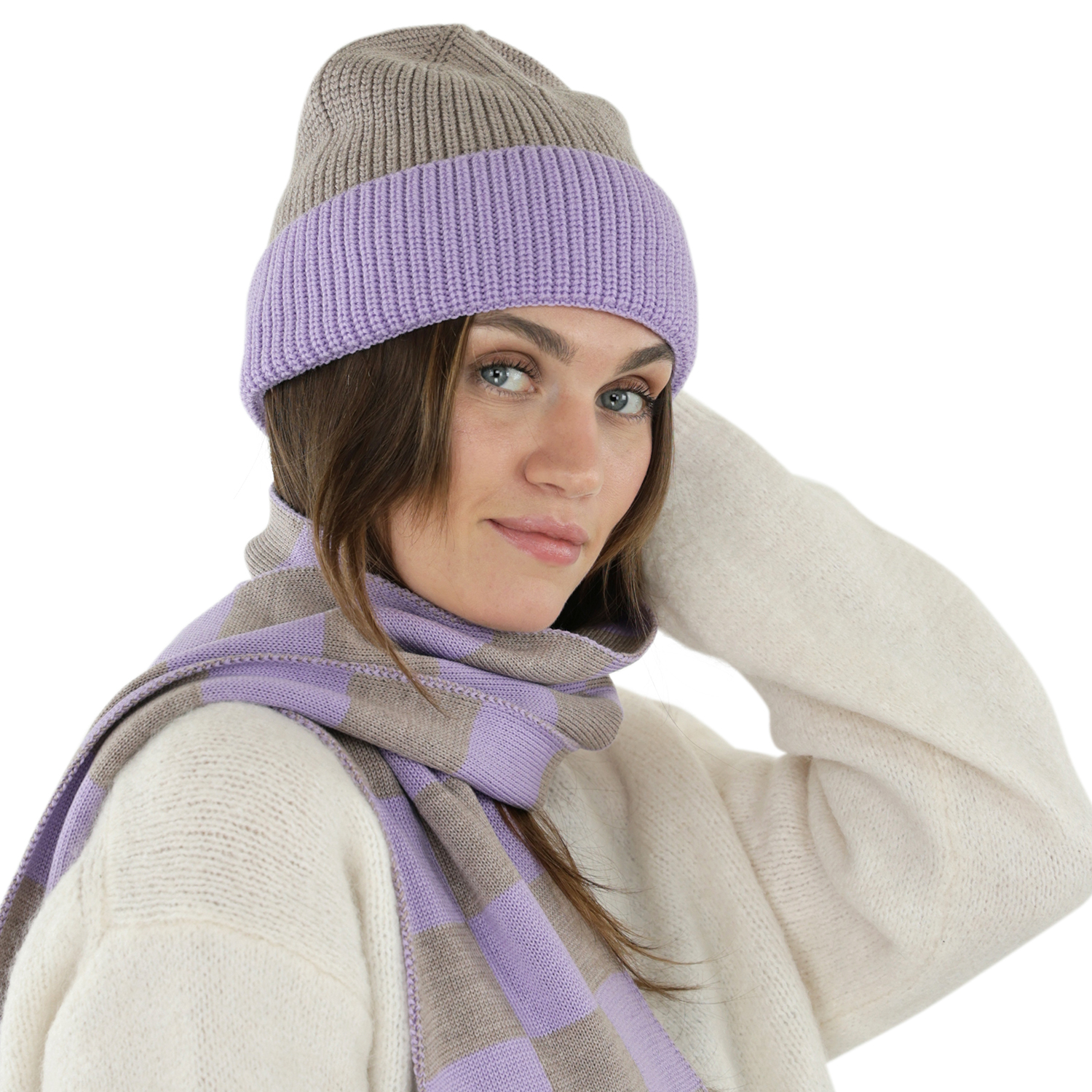 Beanies - Gårda St. Moritz Merino Wool Beanie (purple/beige)